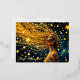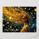 Cosmic woman with glowing starry golden hair foil holiday postcard