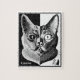 Line illustration of my cat Cosmo. He was my spirit familiar and constant companion for 20+ years. As you put this puzzle together, ponder these words of wisdom: Handsome cat. A noble sight. Still as stone. Dark as night. Cool, calm gaze in sharp highlight. An etching inked in black and white. He came to me a rescued friend. He holds my heart and helps it mend. Now at dusk and dawn we wend our ways as one 'til time's at end. A scratchy sketch. A simple rhyme. A single truth I can divine, is sharing with his feline mind, that life is now. This is our time…Please note: If you wish to have any Zazzle product imprinted with one of my arts, let me know your preferences and I’ll make it happen. Greg Lloyd / Kinetic Collage postings can be seen at: kineticcollage@cox.net or https://www.facebook.com/kineticcollage or www.pinterest.com/kineticcollage/ or www.youtube.com/user/kineticcollage/ or https://www.instagram.com/kineticcollage/ All greg_lloyd_arts store arts, images and descriptive text copyright Greg Lloyd 1967-2025.