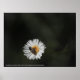 A photograph of a black bee on the yellow centre of a white aster flower.