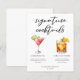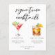 This sophisticated signature cocktails menu sheet features simple black typography above 2 of your favourite drinks and their ingredients for your coastal wedding bar. A chic Cosmopolitan and Dark & Stormy drawing add a fun flair to your bar menu. Complete with the couple's names and date for their reception.