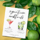 This sophisticated signature cocktails menu features simple black typography above 2 of your favourite drinks and their ingredients for your coastal wedding bar. A chic Cosmopolitan and gin and tonic drawing add a fun flair to your bar menu. Complete with the couple's names and date for their reception.