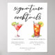 This sophisticated signature cocktails menu poster features simple black typography above 2 of your favourite drinks and their ingredients for your coastal wedding bar. A chic Cosmopolitan and Long Island Iced Tea drawing add a fun flair to your bar menu. Complete with the couple's names and date for their reception.