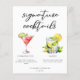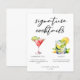 This sophisticated signature cocktails menu sheet features simple black typography above 2 of your favourite drinks and their ingredients for your coastal wedding bar. A chic Cosmopolitan and Mojito drawing add a fun flair to your bar menu. Complete with the couple's names and date for their reception.
