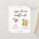 This sophisticated signature cocktails menu sheet features simple black typography above 2 of your favourite drinks and their ingredients for your coastal wedding bar. A chic Cosmopolitan and Moscow Mule drawing add a fun flair to your bar menu. Complete with the couple's names and date for their reception.