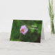 Photographic image of a pink Cosmos wildflower on a background of softly blurred green foliage printed on a birthday card.