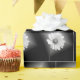 Illuminated white cosmos flower on black background.