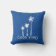 Fun outdoor pillow for anyone who loves the beaches of Costa Rica. Blue and white palm tree "Good Vibes Costa Rica" design is printed on blue pillow and reverse to blue and white stripe on the back. This design can be changed to any colour of your choice. You can use the edit button yourself or contact me with your request and I will send you back a custom order link.