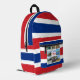 This Costa Rica photo collage backpack combines their flag colours of red, white and blue along with amazing scenic nature images.