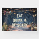Set the tone for a frightfully fun night with this spooky Halloween banner, perfect for your costume and cocktails party! Featuring creepy party zombies raising their drinks, skulls, flying bats, and a dark haunted forest backdrop, this festive design is sure to wow your guests. The bold text “Eat, Drink and Be Scary” makes it the ultimate decoration for Halloween gatherings, whether you’re hosting at home, a bar, or a spooky event space. Personalise it to add your own party details and create a memorable backdrop for photos, fun, and fright-filled festivities!