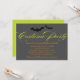 This design features the words "costume party" in green a script. Two black bats sit right above them and your party details in orange sit below. Set on a dark grey background. Graphics ©Cheri Wenger.