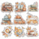 Celebrate the gentle magic of fall with this 9-piece sticker collection, featuring stacks of books, pumpkin clusters, and warm seasonal drinks. Each illustration is lovingly designed to evoke comfort and nostalgia—perfect for planners, scrapbooks, or cosy journalling. From latte art to plaid blankets, these whimsical motifs wrap your pages in autumn’s embrace. Ideal for families, teachers, and anyone who adores sweater weather and storybook charm.