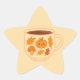 This adorable star-shaped sticker features a cosy autumn-themed mug illustration filled with a warm beverage. The mug is decorated with charming fall elements including a cute pumpkin, mushrooms, acorns, and falling leaves in warm orange and brown tones. Perfect for adding a seasonal touch to letters, planners, scrapbooks, or gift packaging, this sticker brings the essence of fall in a soft and whimsical design. Its star shape adds a playful touch that makes it stand out on any surface.