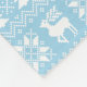 Fleece blanket with christmas sweater inspired light blue pattern.