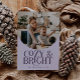 Elegant holiday card featuring a typography text that says "cosy & bright" below your arch shaped photo. Add a second photo on the back along with your message. Background is purple.