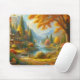 This breathtaking landscape painting captures the essence of autumn in all its splendour. A cosy cabin nestled amidst a vibrant forest of golden leaves invites you to escape the hustle and bustle of everyday life. A tranquil river meanders through the scene, reflecting the colourful foliage and creating a sense of peace and serenity. A small boat rests at the water's edge, beckoning you to explore the picturesque surroundings. Pumpkins and wildflowers add a touch of warmth and charm to this idyllic scene.