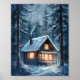 Cosy Cabin Nestled in Snowy Forest Poster