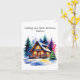 This greeting card with its image of a cosy cabin in the forest captures the essence of a peaceful Christmas in the heart of nature, evoking a sense of warmth and nostalgia for the holiday season. Blank inside so that you can add your personalised greeting.