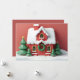 This festive Christmas card features a charming red cottage covered in snow, surrounded by two beautifully decorated Christmas trees. The cosy scene is perfect for spreading holiday cheer and evoking feelings of warmth and comfort. Ideal for sending to loved ones to wish them a Merry Christmas and a Happy New Year.