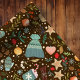 Add warmth and charm to your holiday gifts with this cute wrapping paper featuring a delightful pattern of cosy winter mittens, hot cocoa mugs, winter greenery, and festive decorations. The deep brown background and whimsical illustrations create a fun and cosy holiday vibe, perfect for wrapping presents with a touch of holiday spirit.
