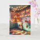 Cute teal cosy vintage kitchen full of holiday decorations and Christmas lights and retro vibes. Wishing you a cosy old-fashioned Christmas and a Happy New Year. Inside text of card can be personalised, so you can add your name if you want or change the inside greeting.