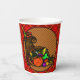 This Thanksgiving Holiday Cup featuring a country-style design of pale olive green and red plaid background behind a stained glass look wicker cornucopia filled w/ harvest fresh fruits and vegetables, and double outer borders (red plaid and solid black). See coordinating products by digital artist, Leslie Sigal Javorek, at HoMeArts.