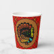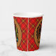 This paper cup featuring original digital painting of pale olive green & red plaid pattern bordered w/red plaid & solid black as the perfect backdrop for our faux stained-glass turkey. Add matching placemats & napkins for an inviting Thanksgiving table & all season long. Add cookies for hostess gift!
