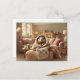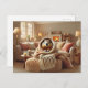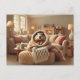 This charming postcard captures the essence of winter cosiness with a delightful image of a groundhog wrapped snugly in a warm blanket. The groundhog's content expression and the invitingly soft textures of the blanket and surrounding room evoke feelings of comfort and relaxation. The warm colour palette, featuring soft browns, creams, and touches of peach, adds to the overall sense of tranquillity. Perfect for sending winter greetings, thank you notes, or simply a touch of heartwarming cheer, this postcard is sure to bring a smile to anyone's face. It's a sweet reminder of the simple pleasures of staying warm and cosy during the colder months.