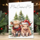 Cosy Highland Cow Farm Animal Cute Merry Christmas Holiday Card