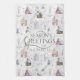a down-home Christmas. Available in two boho colour palettes, this version features shades of pink, silver and soft beige. We've provided optional 'Season's Greetings' text and you can personalise this festive Christmas kitchen towel with your name(s) and date. Search ID985 to see all the coordinating products with this adorable Christmas pattern.