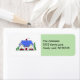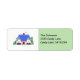 A unique house with a blue roof and red doorsis featured on this address label. Customise with all of your own information.