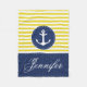 Cosy nautical blue and yellow blanket with custom text.