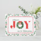 Celebrate the season with this charming Christmas card featuring a lush boxwood wreath adorned with festive mistletoe leaves in a whimsical frame. The word "JOY" takes centre stage, capturing the heartfelt spirit of the holidays. With a classic red plaid from our Cosy Christmas Plaid collection on the back side, this card blends traditional elegance with rustic charm.
