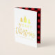 Send your friends and family a stylish holiday photo greeting card this Christmas season. This beautiful, rustic Christmas card features the words "Merry Christmas" in a trendy script font with Christmas trees in real gold foil, a placeholder for your custom photo, and placeholder for your custom greeting. The inside also features a rustic red and black buffalo pattern.