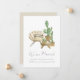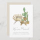 Cosy boho new address announcement features a neutral home decor illustration with simple cactus potted plants and modern hand lettering.