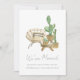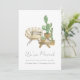 Cosy boho new address announcement features a neutral home decor illustration with simple cactus potted plants and modern hand lettering.