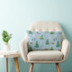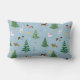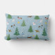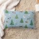 A cute pillow with playful dachshunds, dalmatians, and westies surrounded by snowflakes, decorated fir trees, and festive presents. The wintry design, set against a light blue background, brings a cheerful Christmas atmosphere to any space.