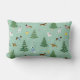 A cute pillow with playful dachshunds, dalmatians, and westies surrounded by snowflakes, decorated fir trees, and festive presents. The wintry design, set against a light green background, brings a cheerful Christmas atmosphere to any space.