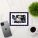 Cosy Purple Black Plaid Border 3 Photos Christmas Foil Holiday Card