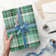 Green & white plaid flannel fabric wrapping paper. The design features a faux green and white plaid flannel fabric texture design with hints of light green. Designed by Moodthology Papery