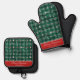 Cosy Red & Green Buffalo Plaid Snowflakes Custom Oven Mitt & Pot Holder Set