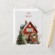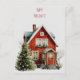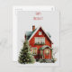 Cosy red house with festive decorations holiday postcard
