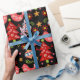 Add a touch of the moody and dramatic with this dark Cosy Scandinavian Folk Art Christmas Wrapping Paper. Make an cute, fun, colourful statement with this Christmas holiday gift wrap in shades of dark black, red, pink, green, blue, green and yellow.