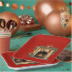 Paper plates with a warm and cosy illustration featuring an old fashioned fireplace. Stocking hanging with care. Garland hanging over the mantel. A warm roaring fire in the hearth.