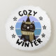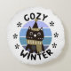 A cute owl wearing a winter scarf and the big words happy winter. For everyone, who loves winter vibes and cute animals.