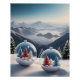 A charming artwork of snow globes in a winter mountain landscape, perfect for festive decor.