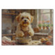Add a soft and joyful touch to your kitchen with this Coton de Tulear design featuring a fluffy pup baking in a cozy setting. With its cotton-like coat and cheerful personality, this artwork brings warmth and charm to any space.