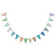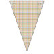 Cottage chic style masculine baby shower pennant bunting, with each flag done in colourful stripes, checks or polka dots. Baby Boy is spelled out in white text, on solid coloured flags.