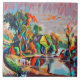 Cottage Cows Pond Landscape Animal Nature Colourful modern Abstract Art ceramic tile