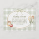 Green watercolor gingham display shower card featuring an oval frame design with a cute green bow, a wildflower bouquet, a jar of honey and an apple. Perfect for a 'Fresh off the market' or cottage bridal shower theme.