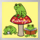 Cottagecore frogs sitting on and under an amanita mushroom, drinking tea, reading a book and sitting on top , personalise by changing to your name on any background colour